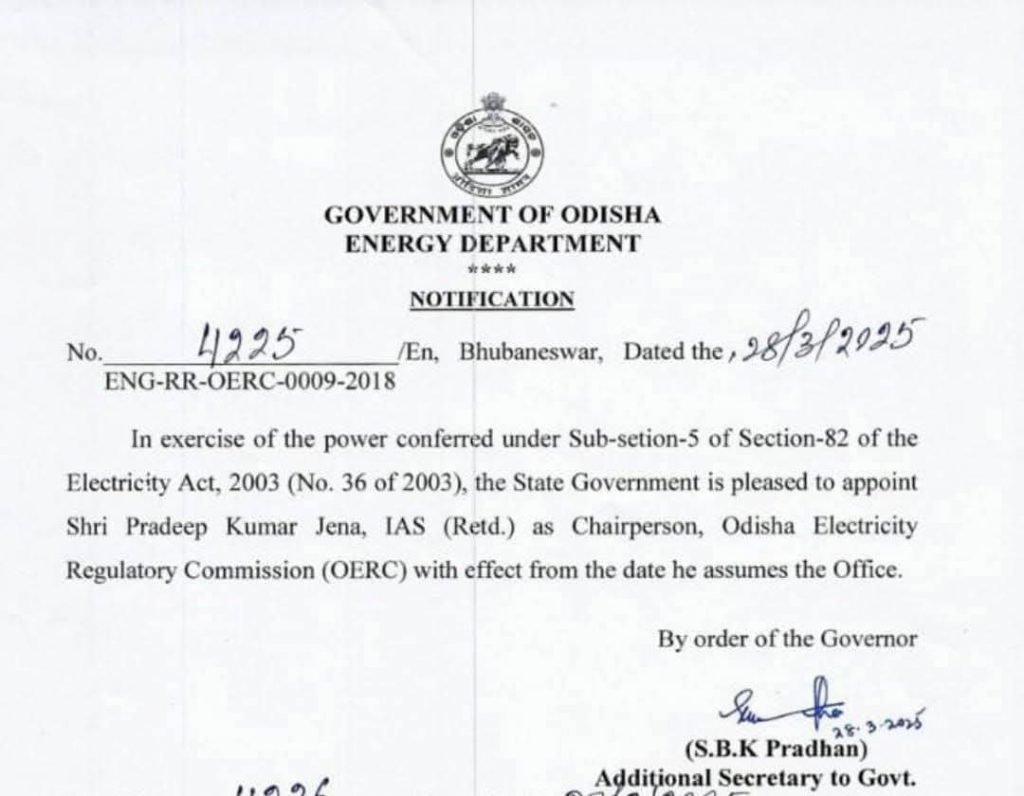 ଭୁବନ ମାଟି ର ପୁଅ ହେଲେ OERC ଅଧ୍ୟକ୍ଷ, ସେ ଅବସର ପ୍ରାପ୍ତ IAS ପ୍ରଦୀପ ଜେନା.. ଜିଲ୍ଲା ରାଜ୍ୟ March 29, 2025April 17, 2025adminLeave a Comment on ଭୁବନ ମାଟି ର ପୁଅ ହେଲେ OERC ଅଧ୍ୟକ୍ଷ, ସେ ଅବସର ପ୍ରାପ୍ତ IAS ପ୍ରଦୀପ ଜେନା.. Spread the love #oerc #dhenkanalnews #bhubannews